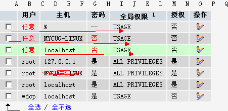 新安装的wdcp 看到mysql后台有这么多用户 不知道是起什么作用的 能否删除