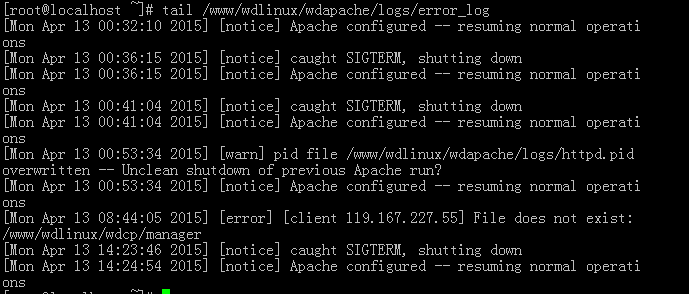 [root@iZ946auw3orZ ~]# tail /www/wdlinux/wdapache/logs/error_log