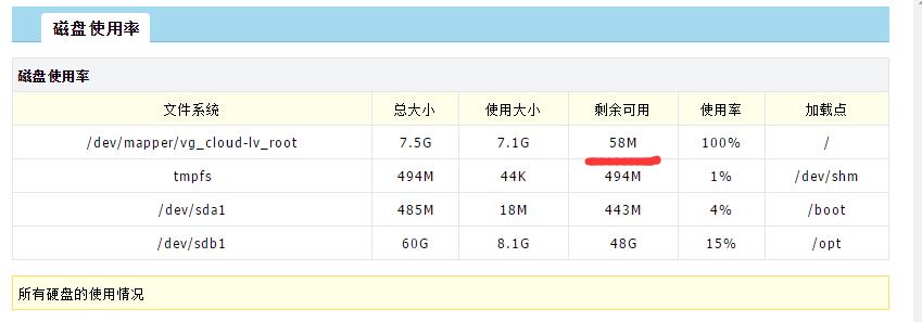 /dev/mapper/vg_cloud-lv_root 目录爆了,WDCP后台会无法打开,一片空白。通过FTP胡乱删除了些文件,现在空余100M出来了。这样过两天又歇菜了。 请问老大该如何优化和设置来避免这种情况? 麻烦详细告知怎么操作,百度了也搜索了论坛帖子无解决方案的,在有数据的情况下也不敢按百度教程操作啊。