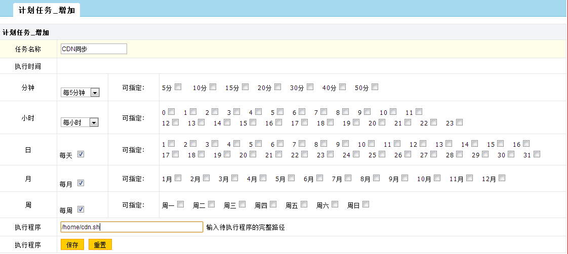 是怎么加的?上面的内容,写成一个脚本,然后在wdcp的后台任务的执行程序里,用这个脚本文件地址?