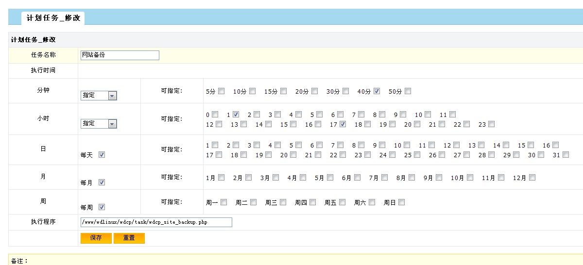 /www/backup/下 没有备份文件   点更新计划任务也不行