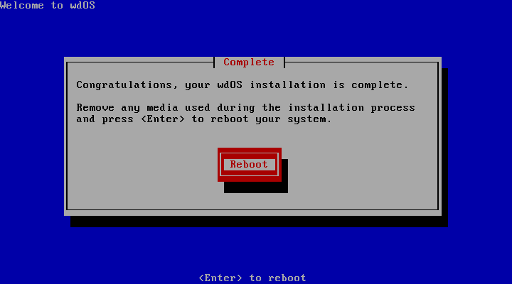 完成后打开本机的浏览器,输入wdOS的ip地址出现下面的页面就说明已经成功安装完毕