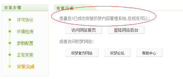 这样DEDE网站模板在wdos_1.0_32位下就安装成功了