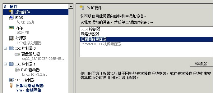 步骤如下: 首先需要kernel-devel和gcc 我的是64位的CentOS,还需要adjtimex RPM确保时间准确性 因为没网,安装就得从光盘安装。要将yum的repo设置为光盘 于是 # cd /etc/yum.repo.d 两个repo CentOS内有两个repo CentOS-Base.repo及CentOS-Media.repo Base.repo是在线更新repo Media.repo是输入设备repo 先将的CentOS-Base.repo更名,让系统跳过该repo # mv CentOS-Base.repo CentOS-Base.repo.bk 设定repo来源,baseurl设为光驱目录 /mnt/cdrom,enabled为1代表启动 # vim CentOS-Media.repo vim CentOS-Media.repo 改成 改成 把CentOS的碟载入本虚拟机光驱 然后挂载到目录 # mkdir /mnt/cdrom # mount /dev/cdrom /mnt/cdrom 挂载到目录 安装kernel-devel套件 # yum install kernel-devel -y 完成后安装gcc套件 # yum install gcc -y 64位系统还需要安装adjtimex RPM # rpm –ivh /mnt/cdrom/Centos/adjtimex-1.20-2.1.x86_64.rpm 然后umount 原始安裝光碟 # umount /mnt/cdrom 在Hyper-V控制器里面把微软官网 Linux Integration Services v2.1 for Windows Server 2008 Hyper-V R2 地址:http://www.microsoft.com/downloads/details.aspx?displaylang=zh-tw&FamilyID=eee39325-898b-4522-9b4c-f4b5b9b64551 解压得到的ISO加载到光驱 然后 # mount -t iso9660 /dev/cdrom /mnt/cdrom # cp /mnt/cdrom/* /opt/linux -R 然后去安装就行了 # cd /opt/linux_ic_v21_rtm # make # make install 最后重启 # reboot 配置好了可以ifconfig看看 ifconfig看看 名称分别为ifcfg-eth0,ifcfg-eth1….如果你有一块CentOS网卡IP,就只有ifcfg-eth0一个文件,如果你有两块或者两块以上的CentOS网卡IP,就会有ifcfg-eth1、ifcfg-eth2等文件的出现。 文件结构: DEVICE=eth0 //指出设备名称BOOTPROTO=static//启动类型 dhcp,,,,dcph或static 自动和手动BROADCAST=192.168.1.255 //广播地址HWADDR=00:06:5B:FEF:7C//硬件Mac地址IPADDR=192.168.0.2//IP地址NETMASK=255.255.255.0 //子网掩码NETWORK=192.168.0.1 //网络地址ONBOOT=yes //是否启动应用TYPE=Ethernet //网络类型 1 vim /etc/sysconfig/network-scripts/ifcfg-teh0 2 .启动服务service network restart CentOS网卡编辑主机用的DNS服务器信息命令:vim /etc/resolv.conf 详细出处参考:http://www.jb51.net/os/RedHat/61571.html