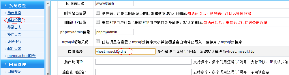我们再次打开wdcp面板 在 系统设置>应用模块 添加dns模块 如下图