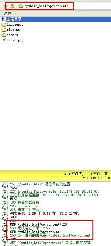 用FTP账号密码登录上去后,可以在/public_html/同级目录删除,上传创建文件/文件夹,但点入内部任何一个文件夹内,无法上传创建文件/文件夹。翻阅论坛,说是1.X版本的有这个问题,2.X版本默认都有写权限。