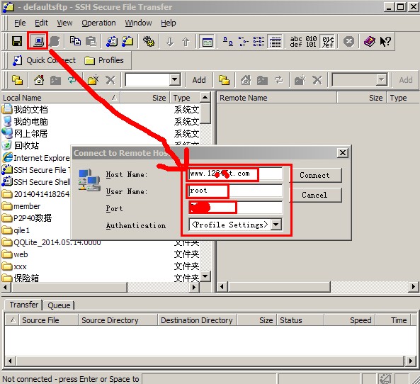 安装SSHSecureShellClient-3.2.9 后运行"SSH Secure File Transfer Client"