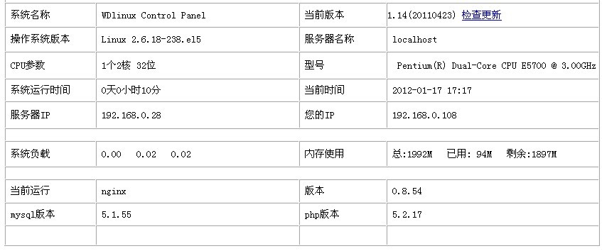 更换了一块网卡,总算可以用了。但WDlinux Control Panel 版本为1.14的,太旧了,如何升级?请赐教。。。使用的是基于CentOS 5.6版本的Lnmp