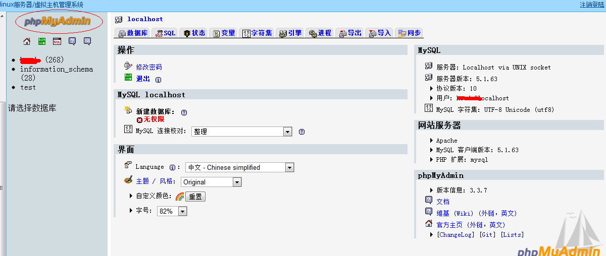 我们可以登录phpmyadmin,对数据库进行修改和操作