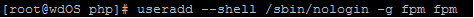 3.添加用户组和用户账号:(我这里以fpm用户组和fpm用户名为例)