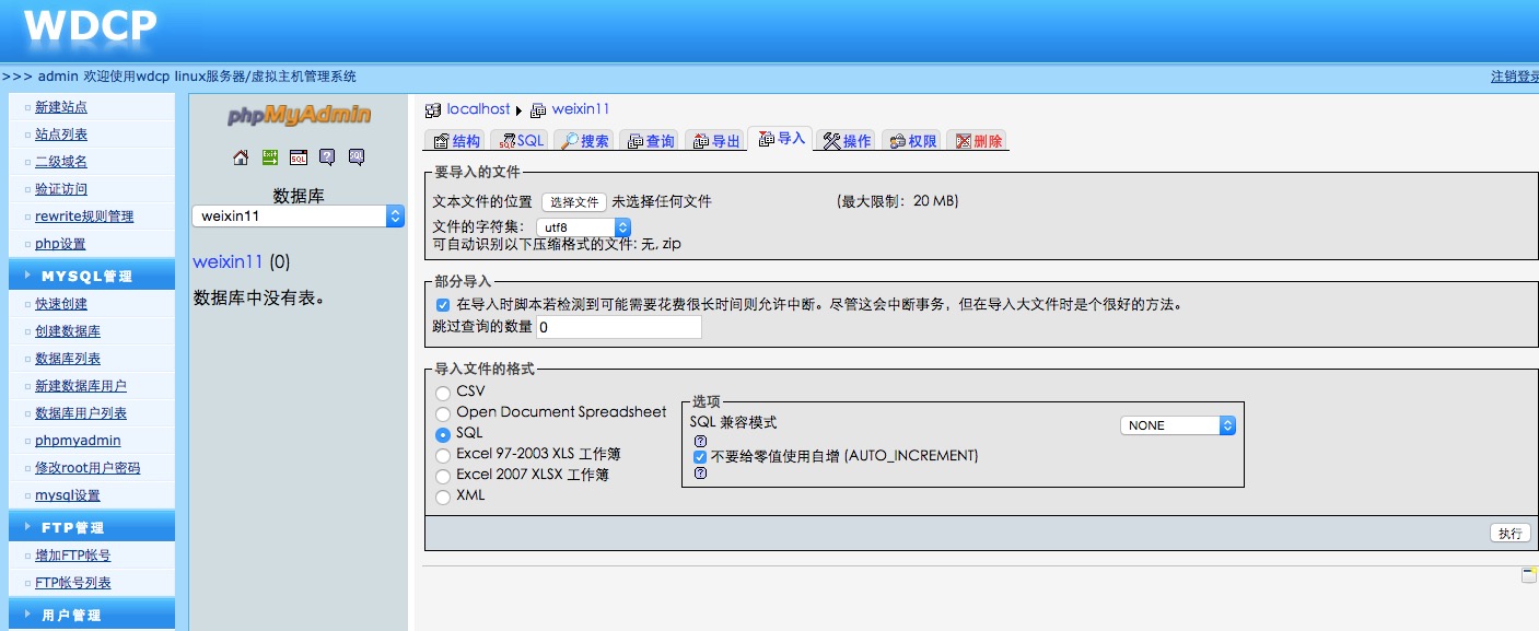 如图:PHP中设置己将上传文件调到120M,但在PHPADMIN中导数据库时还是限制最大20M,请达人指教