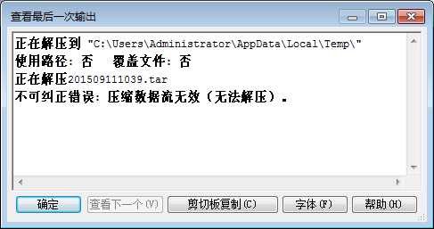 不可纠正错误: 压缩数据流无效(无法解压)。