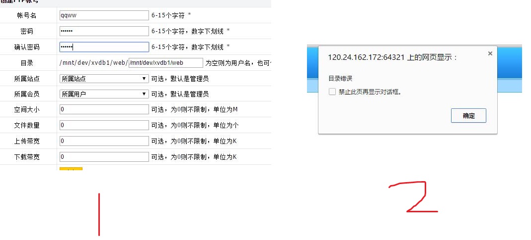后台增加“总FTP账号”提示目录错误