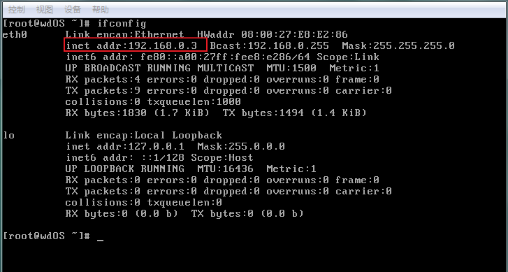 已经开启了网络桥接模式,可以正常获取到虚拟主机的IP地址如图: