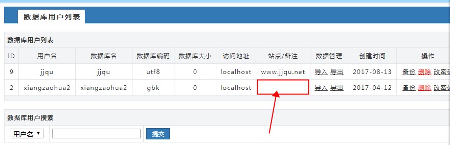 看图,我的一个数据库网站在升级后,后面对应的网站没有,现在数据库只有删除,备份,修改密码三个功能,没有修改的按钮啊,我想就想把这个数据库对应到网站上去