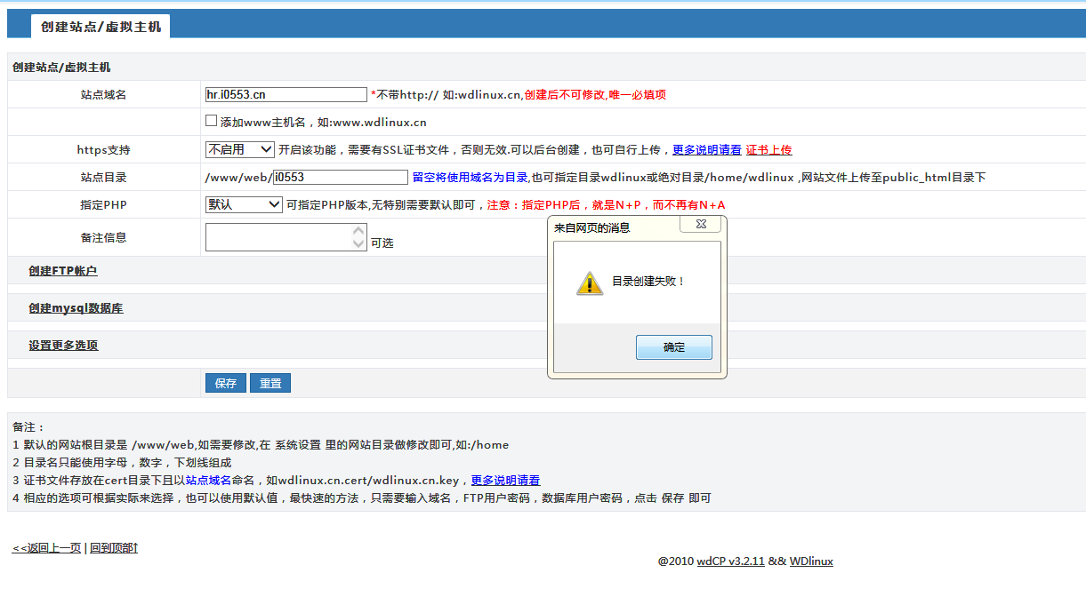 腾讯云主机centos6.X 安装wdlinux 3.2 创建目录一直失败