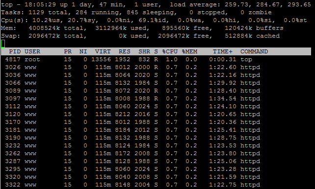 今天又发现负载200多了,老大帮忙看看什么情况啊,昨天下午重启过的