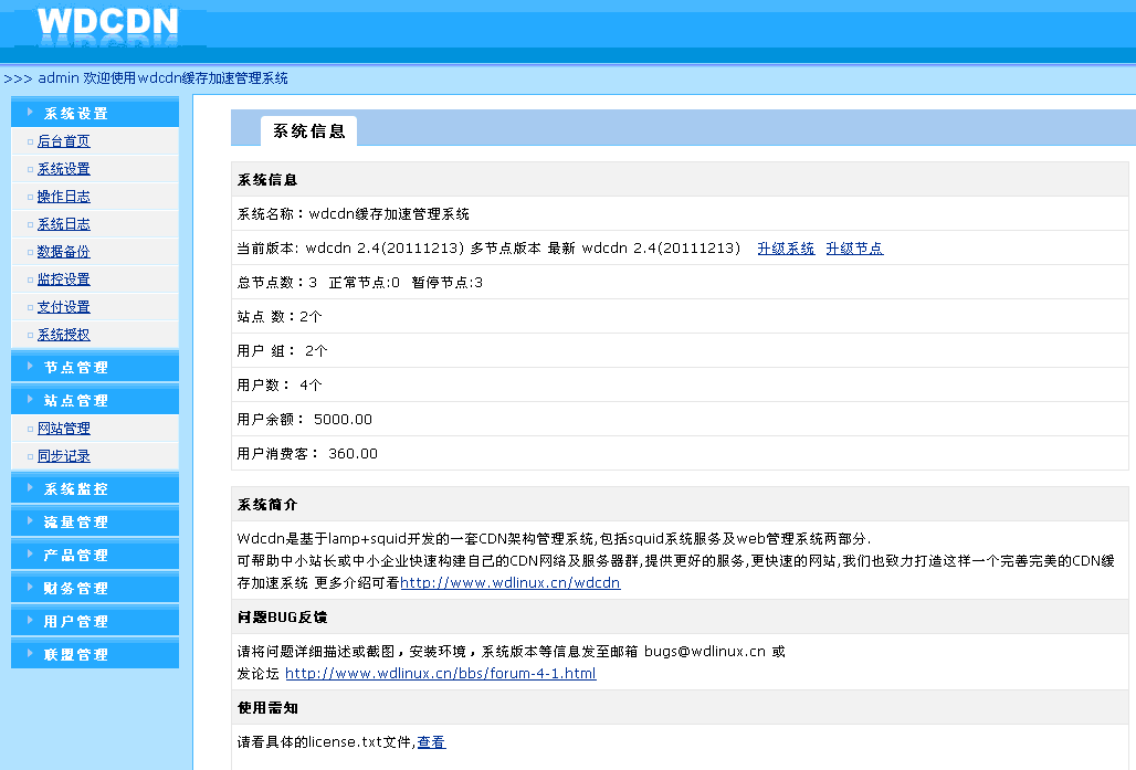 Wdcdn是一套基于Linux+apache+squid架构开发的CDN缓存加速系统及管理系统