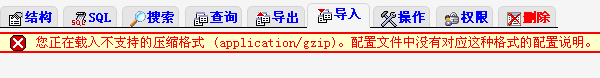 在数据库导入.gz文件,提示不支持的压缩格式