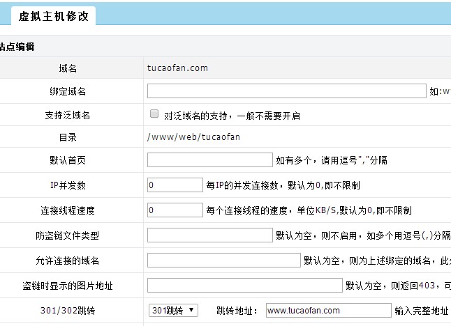 最后到主站点那边编辑,选择301跳转,后面填入带www的域名保存就设置完成了。