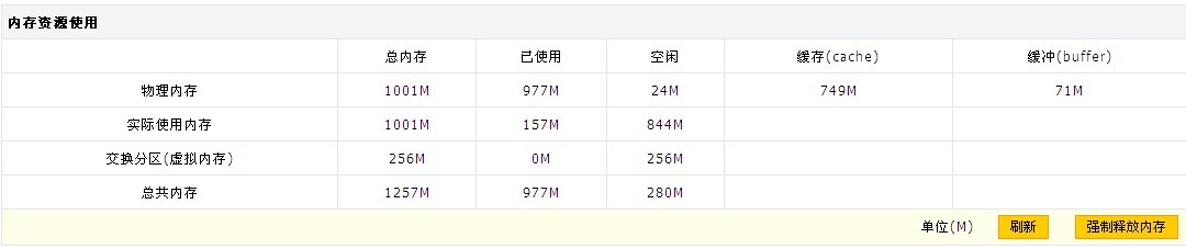 总内存已使用空闲缓存(cache)缓冲(buffer)