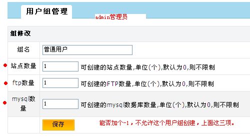 还有,限制某个用户组新建站点(一个都不行),只能管理员帮用户建,但用户能修改一部分信息。