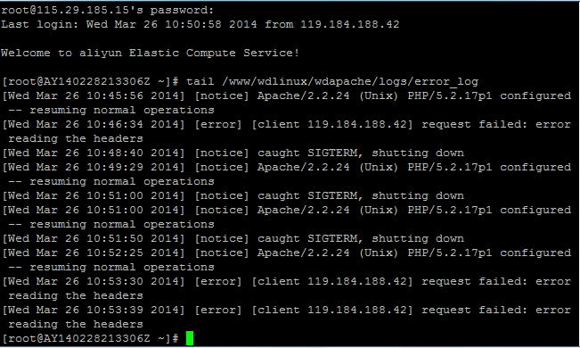 2、运行tail /www/wdlinux/wdapache/logs/error_log后显示如下,请帮忙看下,这个不太懂,谢谢