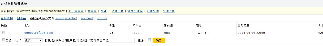 在“文件管理”里面查看nginx,apache的配置文件,一点都不会改变,仍旧是最原始的配置文件。